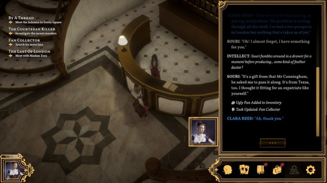 One of the quests in Sovereign Syndicate has Clara Reed collect hand fans, so we’ll outline how to find all the fan locations.