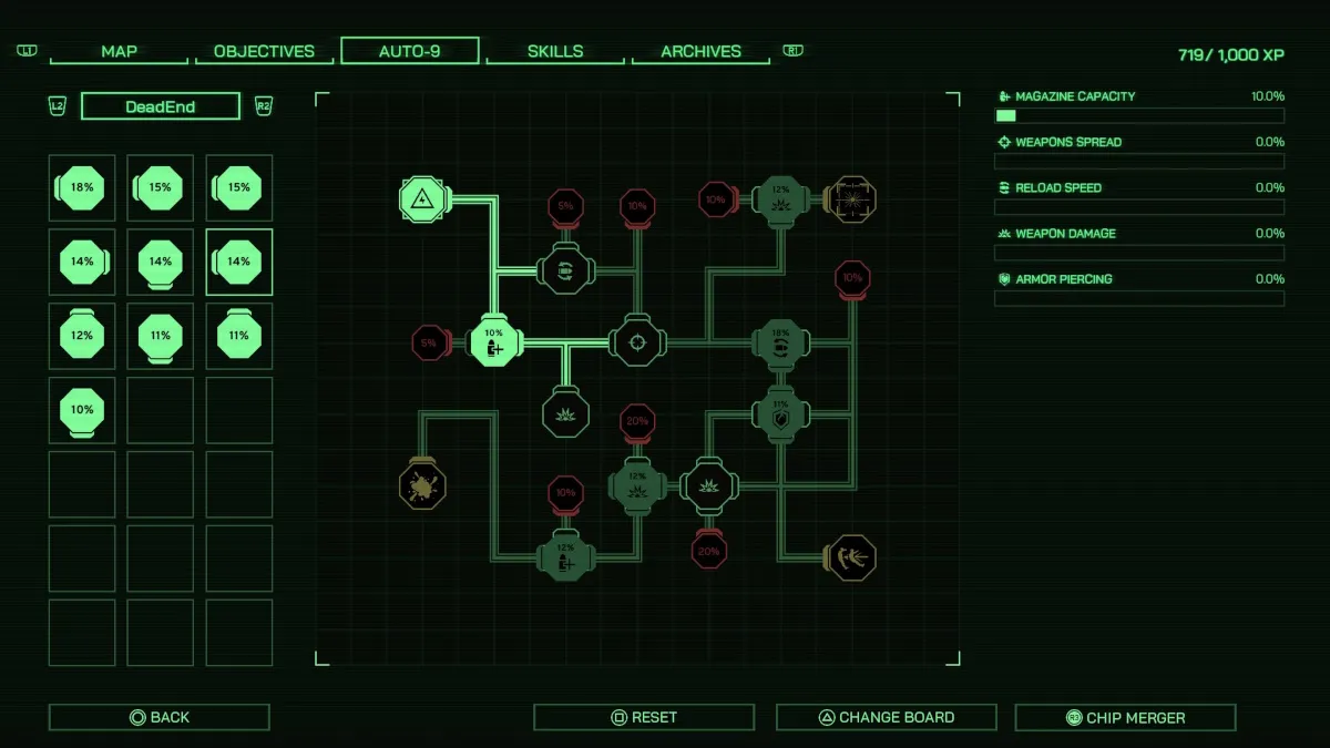 You’ll get your first Motherboard early in the story, and you can use this to install Chips into your Auto-9 Handgun. You’ll find other Motherboards as you explore new areas, and you’ll also earn a handful as quest rewards. Every Motherboard has a unique layout and offers different buffs.