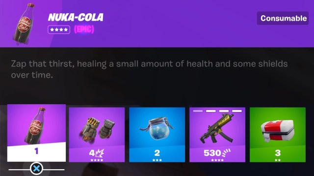 Another downside of Nuka Cola is how rare it is. I play Fortnite like a loot goblin and usually have to ransack several POIs before I find one.