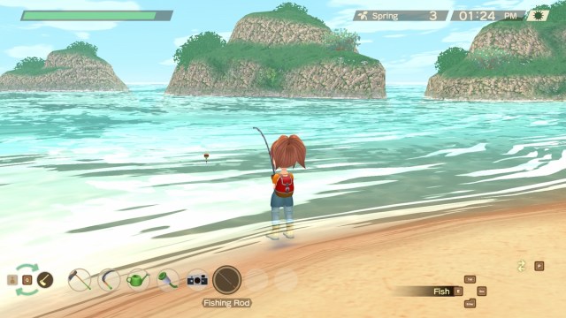 Now you can go fishing in any area with water, which there are basically four of. Either fish at the ocean, the river, Turtle Pond, or the sacred spring in the Forest. But how do you catch a fish in Story of Seasons: A Wonderful Life? Just walk up to an area you want to fish, hold your Fishing Rod, and press ‘E’ on your keyboard to use it.