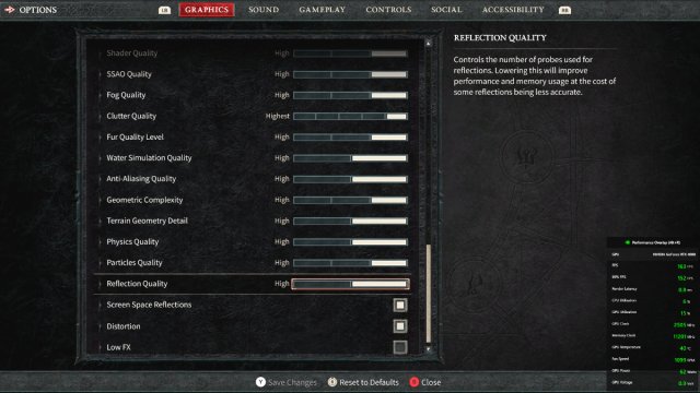 Most of the strain will be on the graphics solution. If you need to improve your fps, try the following changes. Set Low FX to On, Screen Space Reflections to Off, Soft and Dynamic Shadows to Off, and Distortion to Off. Next, set shadows, reflections, and fog to medium or low. If your GPU utilization is still high, try turning down particles and geometry.