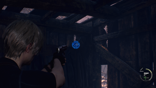 Next up, we can actually move on to the Blue Medallions inside the Fish Farm. The first one of these you’re going to find is going to be inside the first shack you encounter on your way in. This shack has barrels you can break inside if you need more of a picture to imagine. This one is placed high up in the ceiling and can be shot down from inside or outside due to a hole in the wall next to it. You can see the Blue Medallion in the image below.