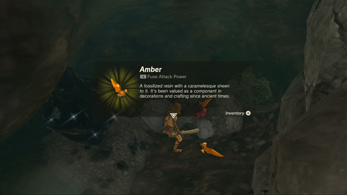 The easiest way to get Amber in Tears of the Kingdom is to look for mineral deposits. You tend to find such deposits in caves, where they appear as large, dark boulders with sparkling light dancing around them.
