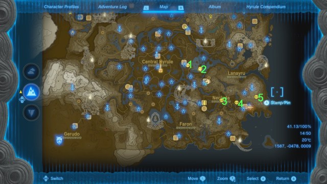 Each of these locations guarantees a Lizalfos encounter. The first two spots on the map are enemy camps that exclusively contain Lizalfos. So, if you’re lucky, you can collect around eight Lizalfos tails in total. The next three locations contain a mixture of Lizalfos and Bokoblins, so the yield won’t be as great. But heading around to each spot has scored me around a dozen Lizalfos Tails on a good day. But reloading a save if you haven’t received many from an encounter is vital. Once you’ve been to each location, we can head down into the Depths for more.