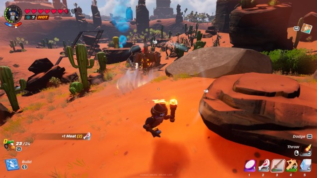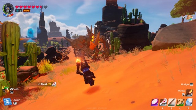 Biomes in LEGO Fortnite determine how tough the creatures are, which also applies to the Alligator Boss. My gear recommendations assume you’re fighting in the Grasslands biome. If you’re fighting in the desert, this same Boss can knock off 7+ Hearts in a single hit.