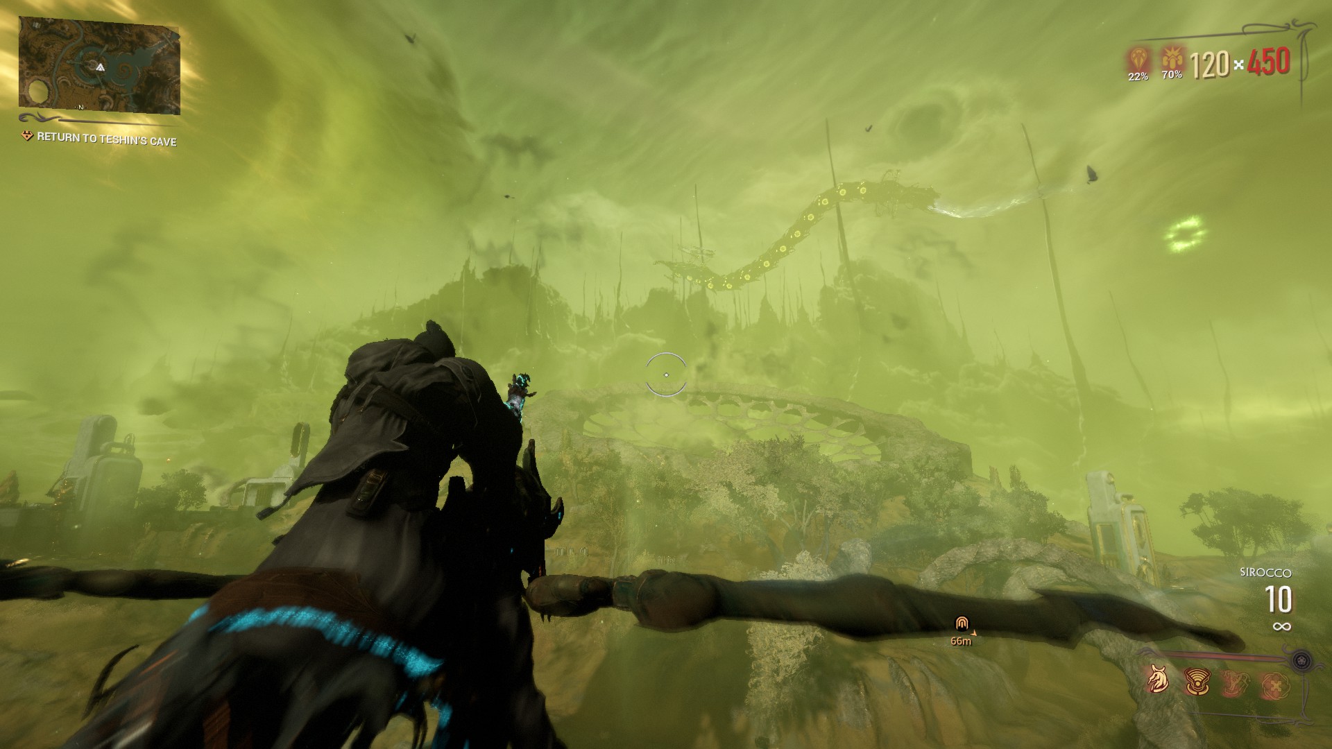 The best way to locate the pillars you need for the Enigma Gyrum puzzles in Warframe is by simply flying over the map. Challenges are highlighted in blue and can be seen from quite a distance. The ones you are looking for are pillars with a blue owl atop. By these, you will spot a series of drums.
