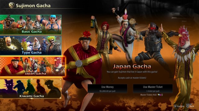 The Japan Sujimon Gacha also takes cash if you don’t want to scrounge for Master Tickets, but even a single pull will set you back a pretty penny. One pull costs $5,000 which is nearly impossible to attain early in the game. As you reach the end of Infinite Wealth’s main story, however, you’ll be able to throw away that much money without a second thought. If you hit a wall in your Sujimon career, just come back with more money so you can build your team with powerful Japanese Sujimon.