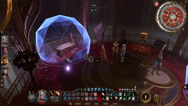 Finally, you can see Markoheshkir hidden in the Globe of Invulnerability. There’s only one way to break this barrier, and it’s by seeing the invisible levers. On my first attempt, I didn’t have this spell, and I was confused as to why the levers weren’t there. I didn’t have the spell on me, so I used the Create Water trick to reveal the invisible lever.