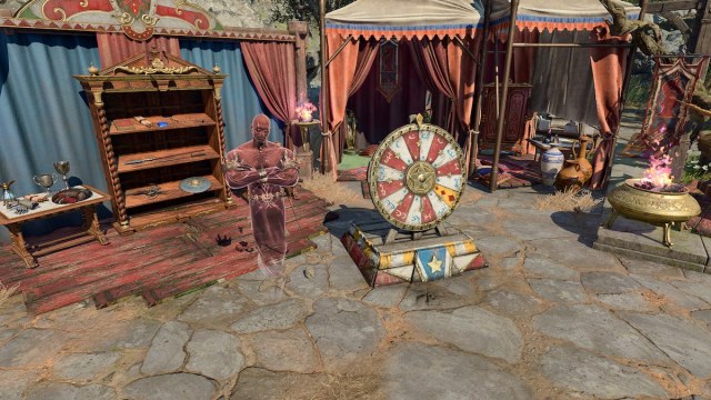Akabi is a djinni who has a spinning wheel for a carnival game. The only problem is you’ll soon notice it’s a little rigged. How you can win is by cheating a bit yourself, which will then lead you to getting Nyrulna. I recommend you pick your sneakiest character, probably Astarion, and have them pickpocket Akabi. Take the Djinni Ring, wear it, then try out the spin-the-wheel game.