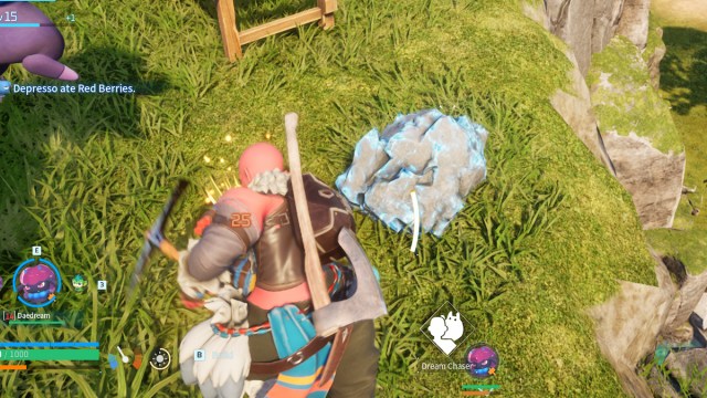 As soon as you get a Pickaxe, you can start mining Paldium deposits for more Paldium Fragments. Typically, around the world, you’ll find little blue stone chunks — these are small Paldium deposits. Mining them will net you five Paldium Fragments. In the first spawn area, you’ll find loads of these around, so going around and mining them all every once in a while should satiate your need for Paldium Fragments for the short term.