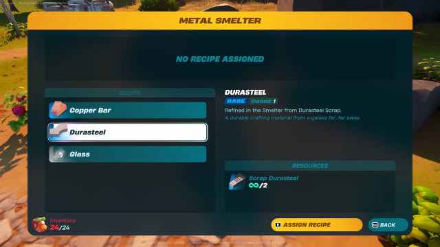 Processing two units of Scrap Durasteel will render one single unit of Durasteel, so make sure to collect enough if you are planning to create every single Blaster, Bowcaser, and Thermal Detonator you are going to need to decimate the Empire’s presence in your LEGOfied version of Fortnite. Be sure to visit the crashed Star Destroyer to get valuable loot!