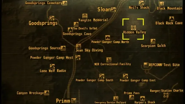 The first thing you need to do to begin your Power Armor Training in Fallout New Vegas is make contact with the Brotherhood of Steel. They can be found in a bunker in the Hidden Valley area of the map. This is found just southeast of Sloan.