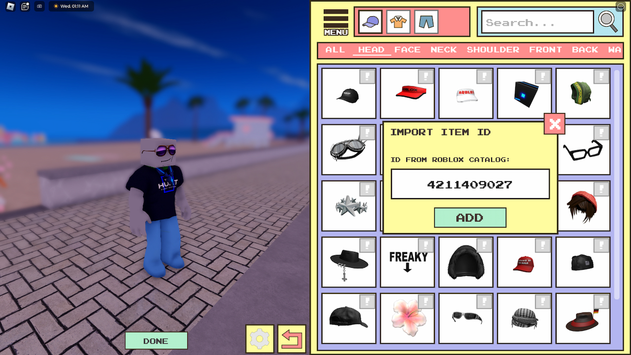 In the top left of this menu, select “Import ID.” A new screen will pop up. Here is where you can type in the ID code from any item from the Roblox Catalogue to Berry Avenue, allowing you to wear things you haven’t bought in the game.