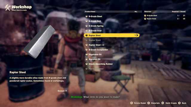 You see, the reason you haven’t come across Raptor Steel in the game – by killing Raptors, mostly – is because Raptor Steel is a processed material. That means that you will have to gather raw materials in the world and then combine them at a specific vendor so that you can craft a new material – in this case, Raptor Steel.