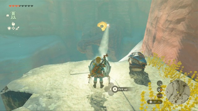 Start into the cave, but move slowly. Gibdo enemies lurk here, and quite a lot of them. Advancing slowly with a bow ready, I fired Arrows fused with Shock Fruit. That approach eliminated all of them (including a winged variety) before they could get close. If you aren’t equipped with that stuff, use some other elemental attack.