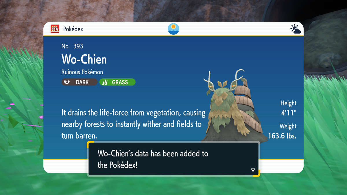 When you catch Wo-Chien, you will have one of the four Ruinous Legendary Pokémon under your control!