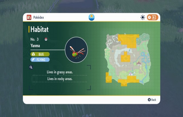 You can also find Yanma around these highlighted locations on the map (pictured above). Yanma likes to run away from fights, but as they are abundant, you should get one within a few tries. If you’ve arrived in Kitakami a little over-leveled and you’re beating wild Pokemon in a single hit, I recommend teaching a party member False Swipes.