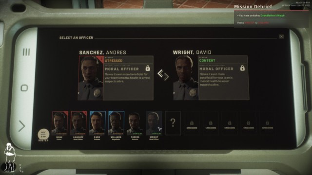 As you complete more missions, more officers will be available to take into your team. At least 12 will be available at later points of the game, so make sure your team comps are a healthy spread of roles like Veteran, Kicker, and more. Mental health is not a game, and in the case of the officers in Ready or Not, overworking them in stressful situations will cause them to shut down, so give them a break!