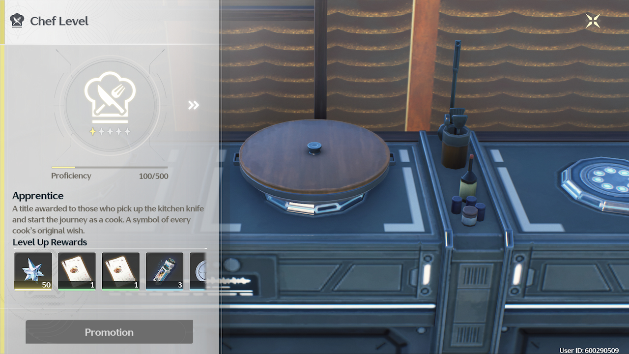 Every time you cook a meal (not an ingredient), you’ll gain Proficiency, which will directly contribute to your Chef Level. As you gain Proficiency, you’ll level up your Chef Level and get rewarded at certain milestones. Note that the more demanding a dish is, the more Proficiency you’ll get from it.