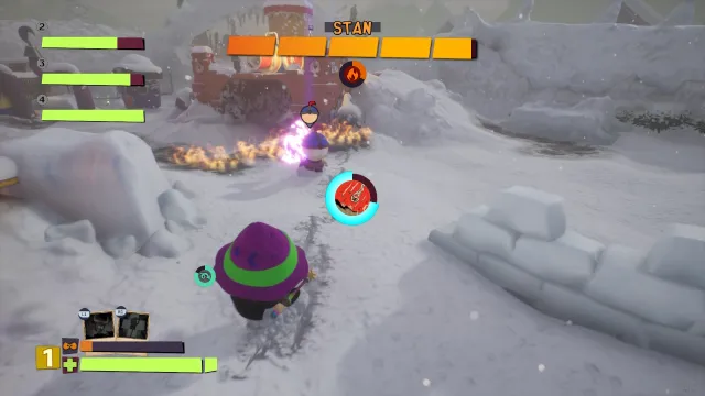 Focus on burning Stan with your Staff but disengage the moment you see attack markers on the ground around you. It’s hard to keep track of everything, so use your Bulls–t Cards here to finish the battle faster. If your AI teammates fall, I don’t advise helping them unless the area is clear, as damage can pile up quickly here.