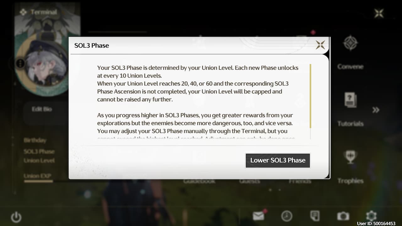 While it is impossible to increase the Phase of Wuthering Waves past your current Union Level, you can lower it by accessing your Terminal, that is, the Menu, and then locate the SOL3 Phase “i” button. You will be prompted with an option to lower or return to your current SOL3 Phase, which you can only do once every 12 hours.