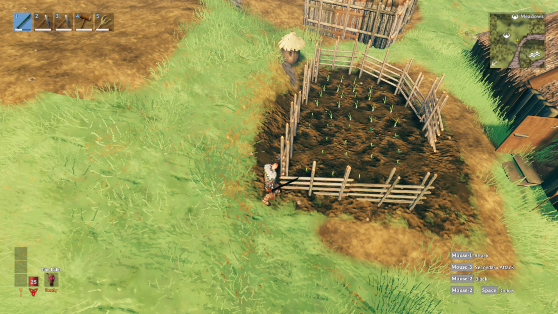 Once you have a pocket full of seeds, you’ll need to find some land on which you’re happy to start your garden farm. Obviously, close to a dwelling is usually best, as there’s no need in trekking miles to your veg. It also allows you to build a fence around your plot due to the proximity to a workbench.