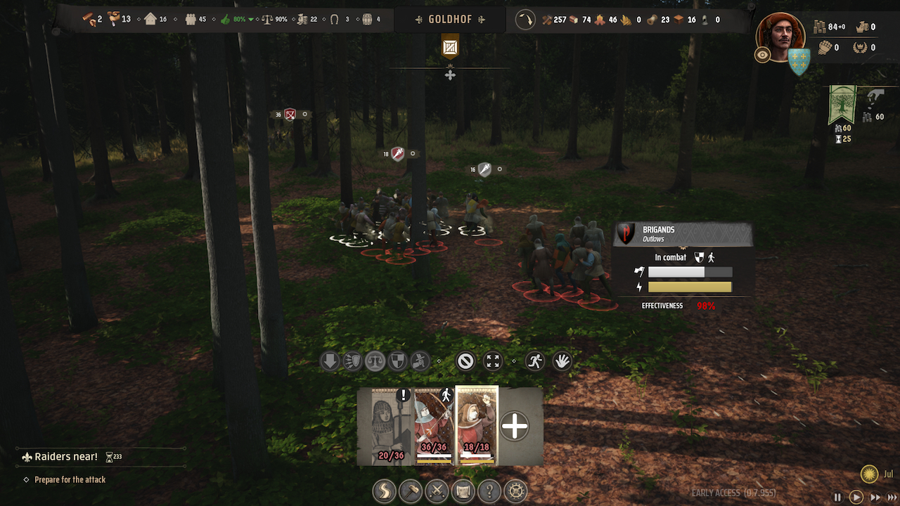 Most players may not pursue the Bandit camps that prop up due to fear. However, they’ll go down a little easier than you might think. It’s crucial to fight and destroy the Brigands not just to stop them pilfering your Storehouse, but also for Influence and Treasury.