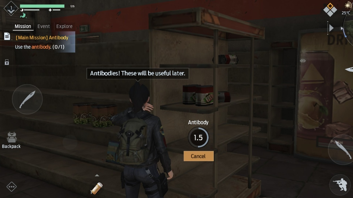 There are many items in Undawn that can restore your health. Cans restore 25 HP and reduce hunger by 25 for five seconds and Antibodies restore 30 HP each.