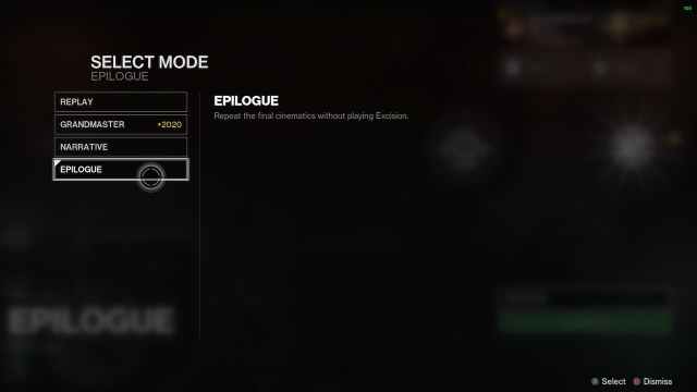 Choose the Epilogue choice and start the mission, you’ll be thrown into the cutscenes at the very end of the story and be allowed to sit in front of the Traveler at the end of it all. Just make sure you’re going for those Episode Echoes god rolls once you get all your screenshots.