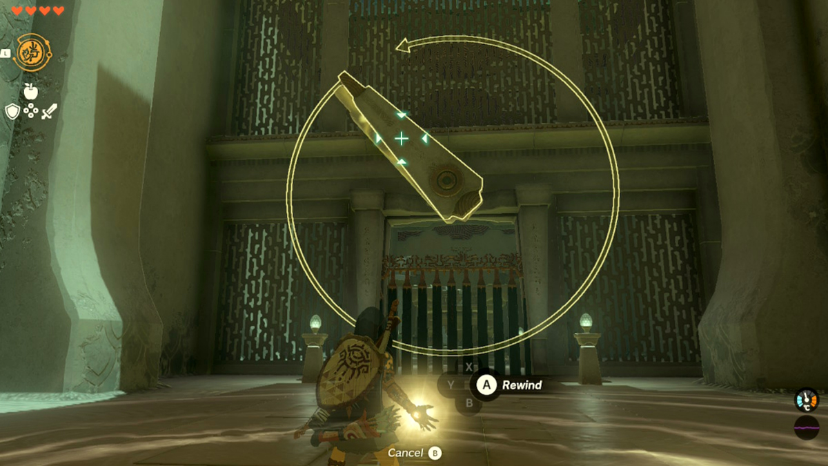 Once you reach the platform in front of you, you’re going to want to hop off and cancel the Recall. This is due to the time limit that this ability has in Tears of the Kingdom, leading you to need to refresh which raft you use as you progress through this shrine. Therefore, wait for another raft to come towards you from the waterfall, and do the same thing again.