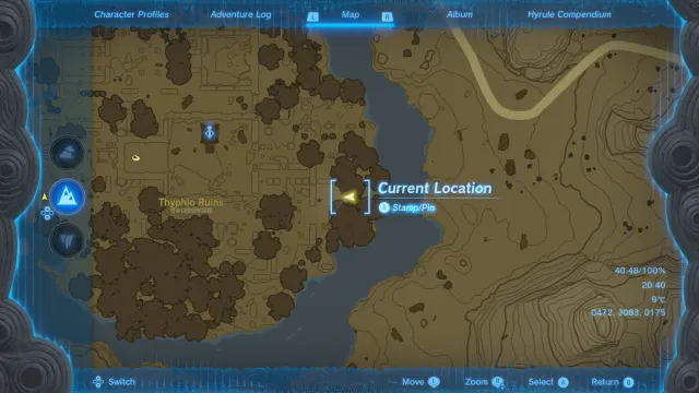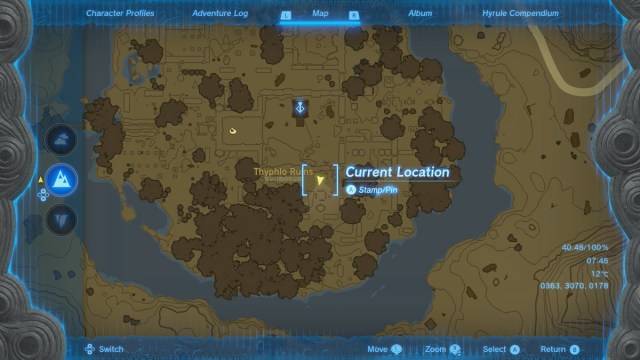 The puzzles in Thyplo Ruins come as part of the “Investigate the Thyplo Ruins” side quest. To start this properly, you’ll need to have finished the Water Temple, Fire Temple, Wind Temple, and Lightning Temple. Once those are done, head over to Thyplo Ruins to start solving some puzzles. Check the map below for Thyplo Ruins’ location.