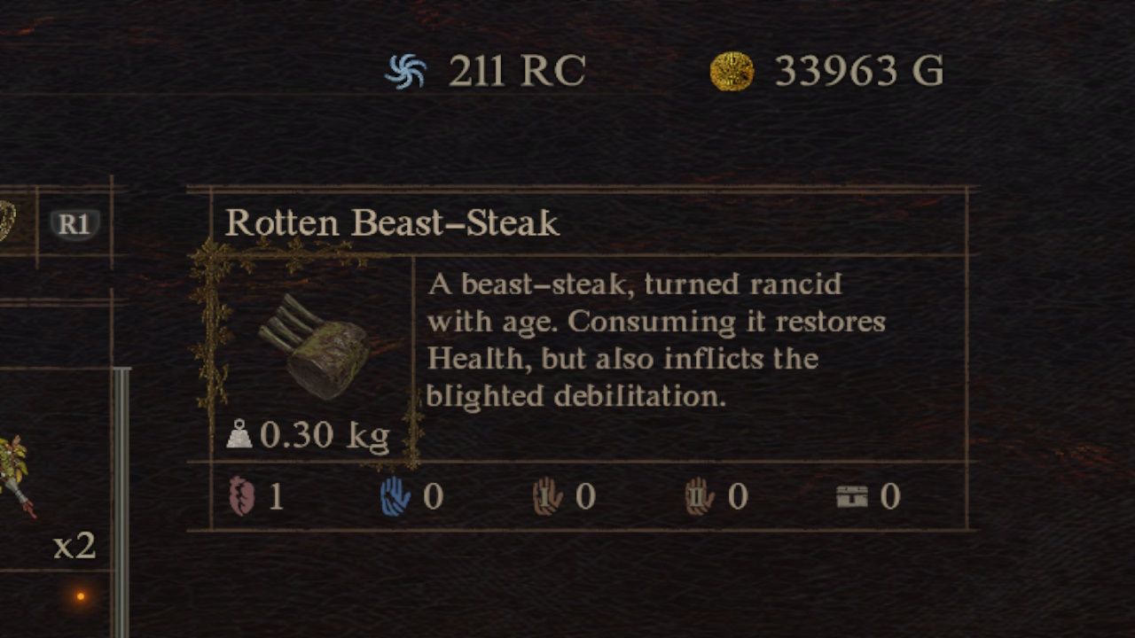 You can also consume rotten items, like the Harspud, to increase Stamina, at the risk of becoming Blighted. The Blighted status ailment works similarly to poison in other RPGs and can be cured with a Detoxifying Decoction.