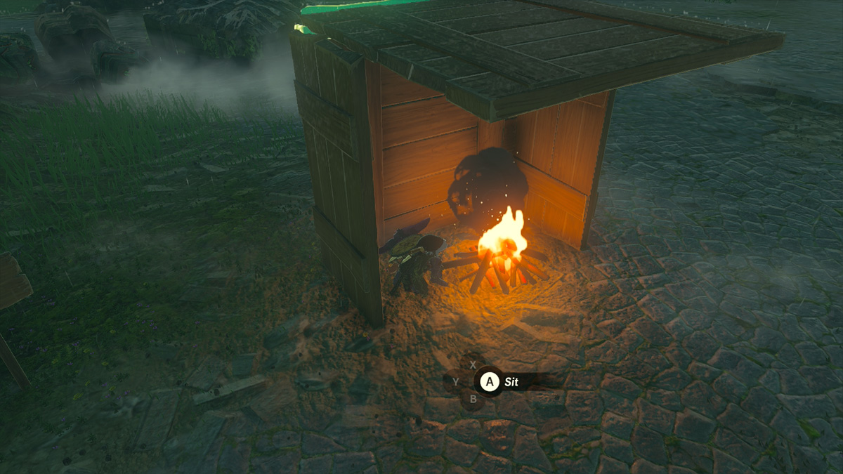The easiest way to stop rain and lightning in Tears of the Kingdom is by sitting at a campfire or stove and passing the time. This allows you to skip past an entire day’s worth of time easily and can get you out of bad weather. Now, if you’re in the middle of a field with no shelter anywhere, building a fire might be tricky. This is where you can use Link’s Ultrahand ability to build a makeshift shelter for the rain.