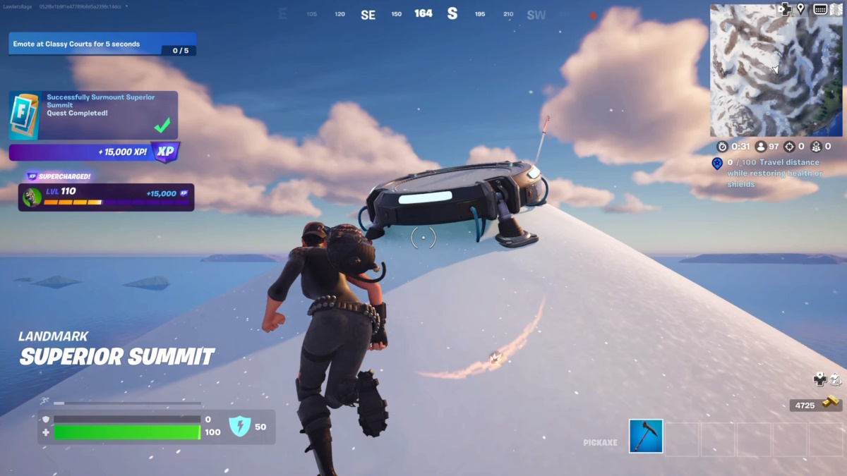 I can’t help but think the quest designer came up with the name before the task itself. Regardless, all you have to do for this task is reach the top of Superior Summit. There’s no exact landmark, but I completed the task when I stood near the Jump Pad right at the mountain’s peak. It doesn’t matter if you die immediately after; once you’ve reached the top, you’ve completed the task.