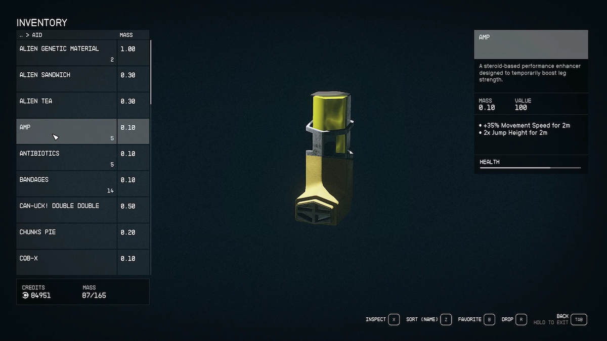 I also highly recommend using an Amp, as it increases your movement speed. It’s a pretty common Aid item, so you probably have a few on you already. And don’t forget to bring along health items like Med Packs. The distance from the end of the crater and back isn’t too long, but it’s a difficult journey due to the random gas hazards and aggressive Maulers.