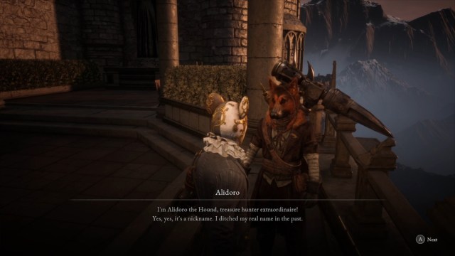 Alidoro might seem like a dangerous fellow at first, but he’s one of the few humans who won’t try to attack you. Instead, he offers up his services and lets you trade Rare Ergo for special weapons and amulets. The wares he sells here are entirely unique to him and can’t be acquired anywhere else with any other currency. So make sure you don’t spend any of that Rare Ergo on yourself before seeing him.
