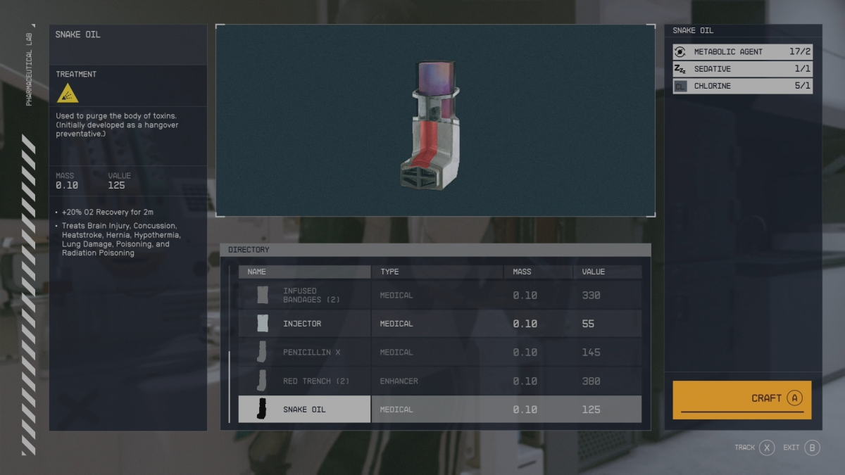 Starfield Craft Snake Oil At Pharmaceutical Lab In Dream Home