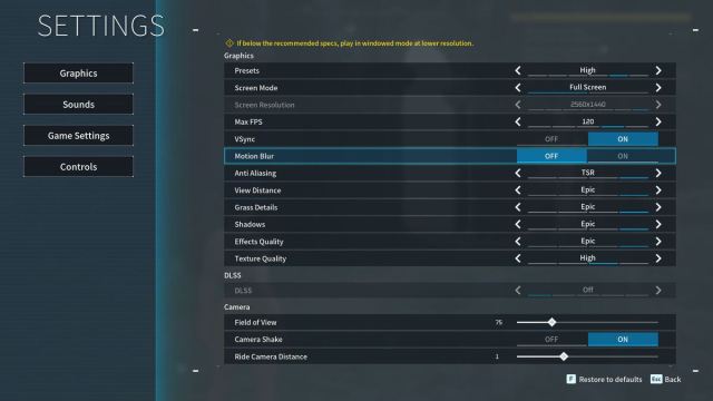 How to turn off motion blur in Palworld