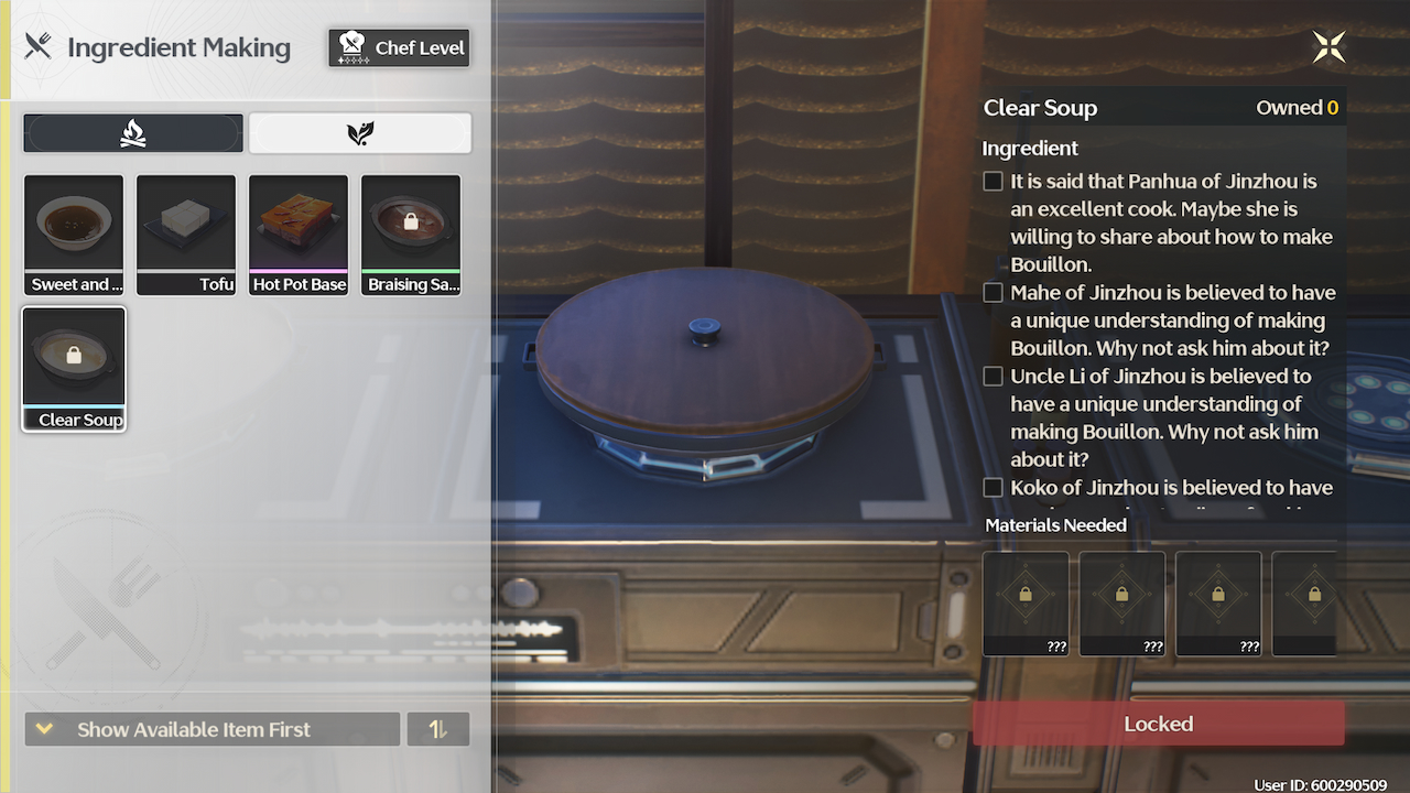 Clear Soup will also be locked to you when starting Wuthering Waves, preventing you from making any of the dishes that use it. To find out the four ingredients that makeup Clear Soup, you’ll need to ask around.