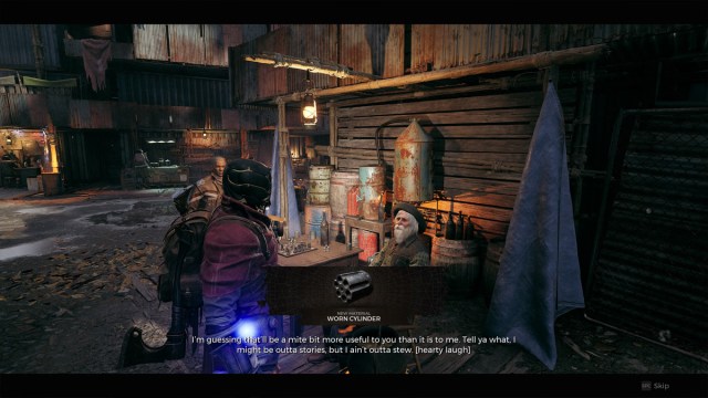 Once you’ve taken two Segments to the Inner Sanctum, we need to head back to Ward 13. Then go and speak to Mudtooth and choose “I had some questions.” You need to keep asking him about his stories until he gives you the Worn Cylinder. He’ll also give you the Gunslinger’s Ring for doing this so you get two nice items in the process. This may take a while so feel free to skip all his dialogue until you get the necessary items.