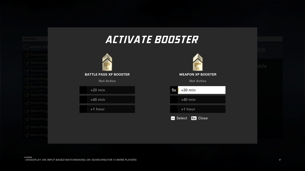 - 40-minute Weapon XP Boosters: