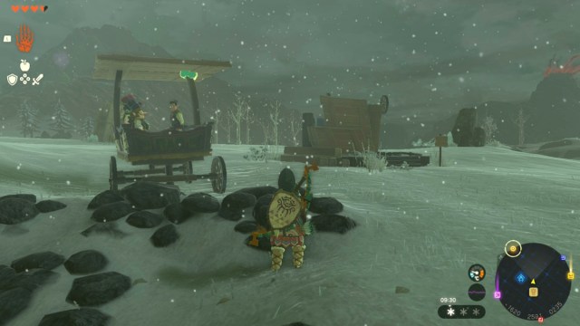After doing this, he’ll thank you and return to the Stable Trotters. Once that’s done, return to the Snowfield Stable and talk to the troupe again. Before you can unlock this Great Fairy Fountain in Tears of the Kingdom, they will then need you to put a roof on their cart, which can be done with the materials next to the cart. Just attach a board to the top to give them shelter from the elements.