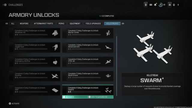 These killstreaks are back and you won’t have to wait to be able to unlock them! All you have to do is use the Armory Unlocks – yeah, I’m not a big fan either. Each of these killstreaks will require completing a whooping eight Daily Challenges. All Multiplayer, Zombies, and Warzone challenges count. Victories and contract completions now count as Daily Challenge points, so at least things are not as difficult as before.