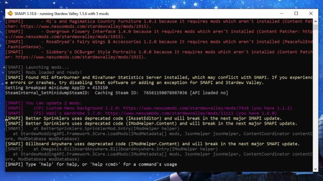 Updating your mods is a lot easier than you may realize. You can check which mods require updates by opening SMAPI, which is the Stardew Valley mod launcher. Upon loading up SMAPI, you should notice purple text denoting which mods of yours have updates ready.