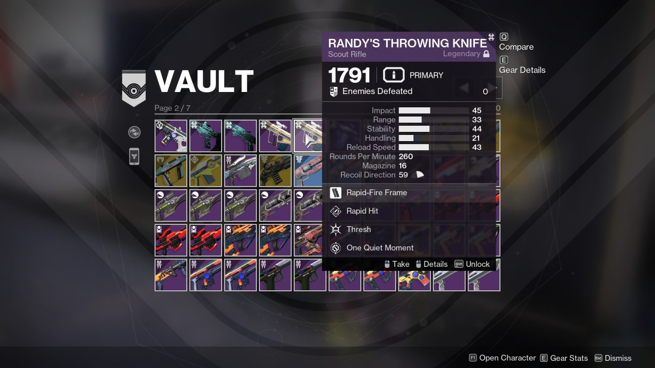 This number represents the popularity of these weapons’ traits. God Rolls will show up as 100% or S tier. Using this scale, you can determine which weapons you should keep with Vault Cleaner and which ones are dead in Destiny 2. I like to keep one for PvE and one for PvP. A weapon or armour with a 70% rating is considered to have 70% of the perfect traits.