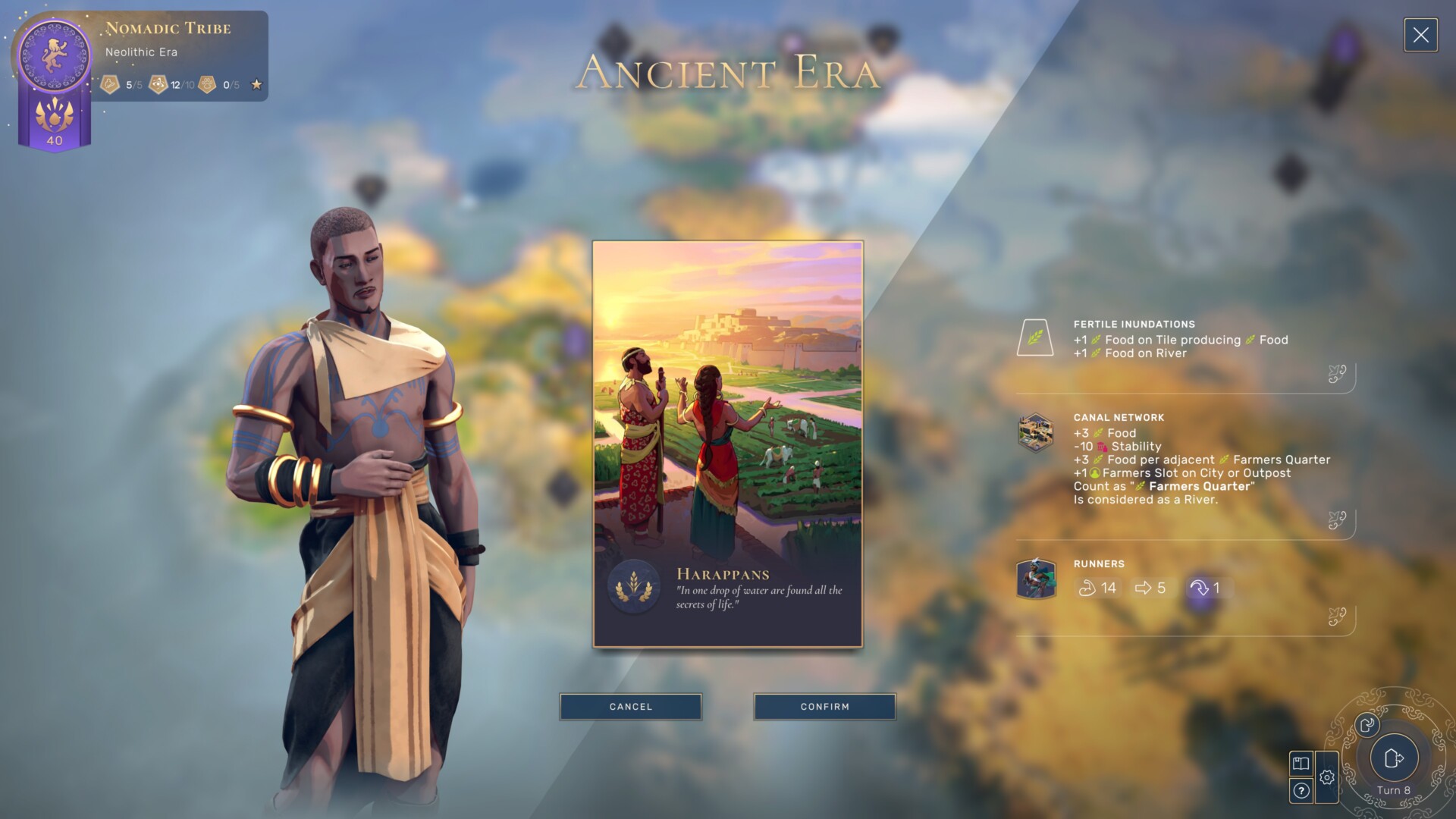 Ancient Era pick: Harappans – I am a huge fan of the Harappans in Humankind. The reason is that all other cultures will have Neolithic Era tribes turn into regular Scouts. The Harappans, meanwhile, will turn tribes into Runners (an extra combat strength and movement point compared to Scouts). While the Runners can’t go toe-to-toe with other Emblematic Units from other civs, they can easily defeat the Scouts that other factions have. Even better, they don’t require strategic resources to get trained.