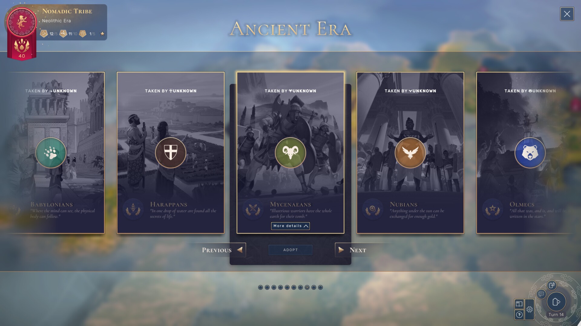 Anyway, once you’ve acquired the Era Star needed to progress to the Ancient Era, you can pick a unique culture. Our civilizations and cultures guide already discusses all the emblematic (i.e., unique) quirks that each culture has, as well as the affinities or archetypes that give more bonuses and extra features. Here, I’ll simply provide tips about my ideal picks.