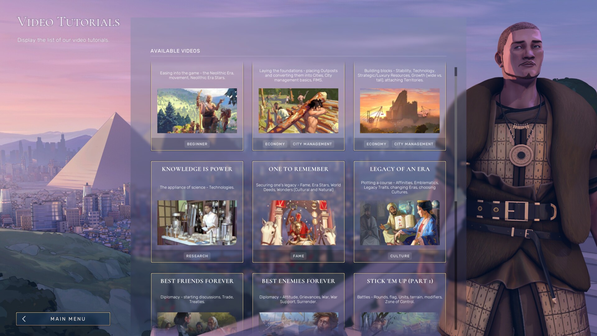 Prior to starting your runs/campaigns, you’ll be able to select your level of familiarity with Humankind or other 4X strategy games. This will determine the tutorials that are active once you’re playing (you can always change this in the Settings -> Gameplay tab).