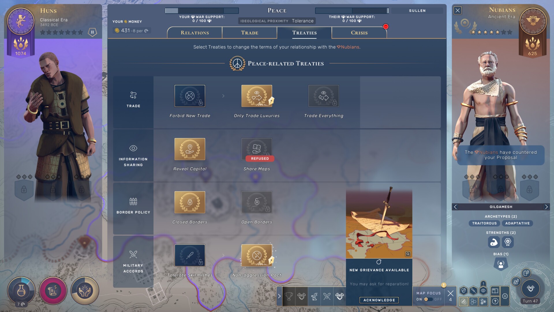 If you want to buddy up with your neighbors, you can enact treaties and trade agreements: