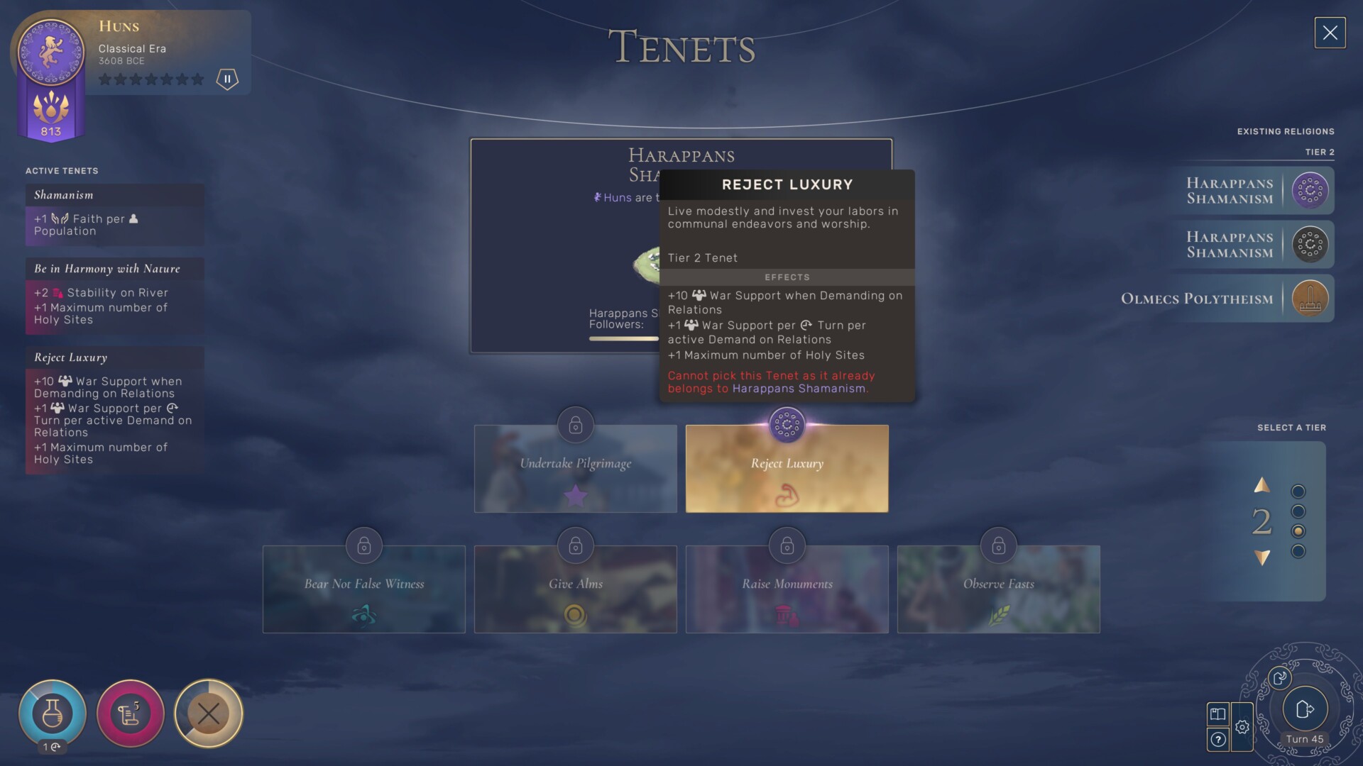 | Undertake Pilgrimage | -25% cost of enacting and canceling civics |